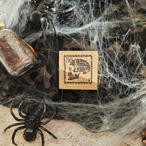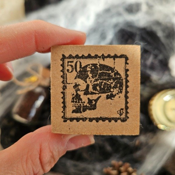 Este sello es una rareza epistolar 👻. Una estampilla espectral que parece sacada de un correo perdido en el tiempo 🕯️. Con su diseño retro y macabro 💀, remite a los antiguos sobres coleccionables, pero con el sello inconfundible del más allá. Es una pieza perfecta para quienes aman lo epistolar, lo vintage y lo misterioso, cada impresión tiene tatuada la historia de un mensaje secreto antiguo ✉️,