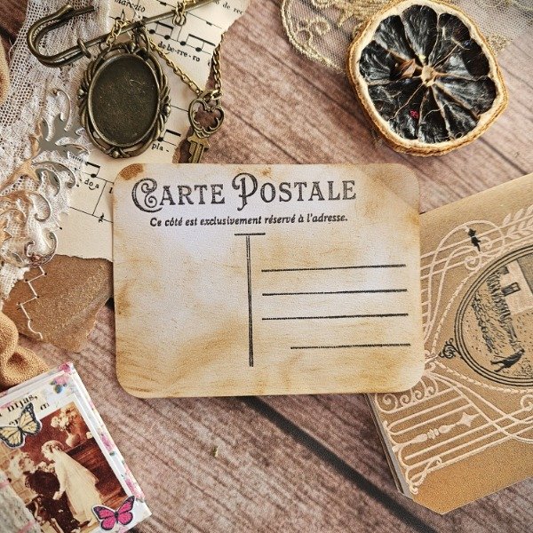 Un clásico de la papelería francesa del siglo XIX: el reverso de una postal antigua con su tipografía elegante y espacio para la dirección. Este sello revive la magia de enviar y recibir cartas, cuando un papel era suficiente para contener distancia, afecto y memoria. Una pieza que transforma cualquier hoja en correspondencia atemporal.