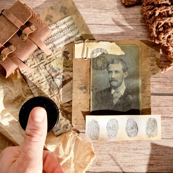 Páginas de identidad o sobres misteriosos, fondos conceptuales, etiquetas de archivo, capas de detectives. Ideal en contraste con algun fondo suave.