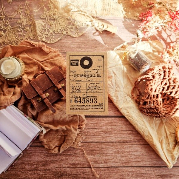 Ticket numerado con campos de relleno. Puede ser viaje, museo o circo: lo define tu imaginación. En capas funciona como ephemera y agrega ritmo visual a la composición.